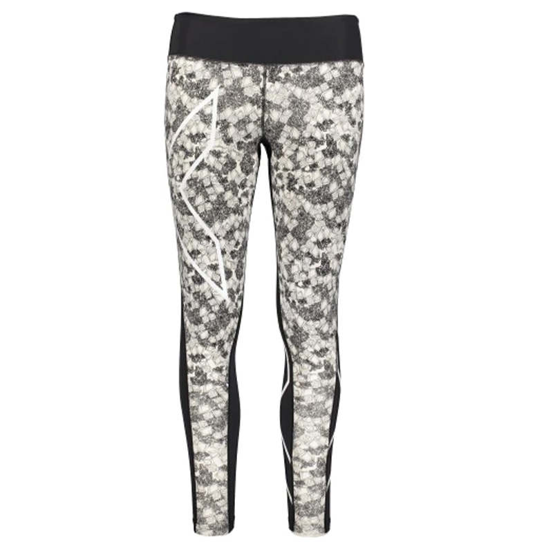 2XU Pattern Mid-Rise Compression Tights Dam Dark Charcoal/PrismCloudWhite Stl: S