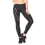 2XU Women's Light Speed Mid-Rise Compression Tights Black/Gold, BLACK/GOLD REFLECTIVE, XL