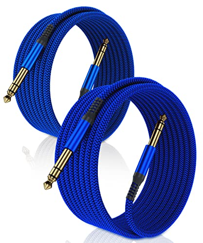 Elebase Stereo Audio Instrumentkabel, 6,35 mm (3 m/2-pack) flätad nylonkabel, uttag TRS 1/4 hane till hane, för elgitarr, bas, tangentbord, mixbord, förstärkare, högtalare