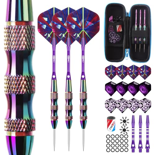 CyeeLife dartpilar med metallspets, 22 gram, 3 stycken professionella steeltyper, 6 aluminiumskaft, 12 flights, 20 lösa gummiringar, 1 Sharpener, 1 pilfodral, stålpilset