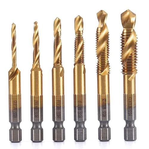 6 delar HSS kombi gängtapp bit sats, Fixinus 1/4 tum skruv sexkantsförsänkare verktyg borrbit set maskingängborr borrbit sats rostfritt stål M3, M4, M5, M6, M8, M10