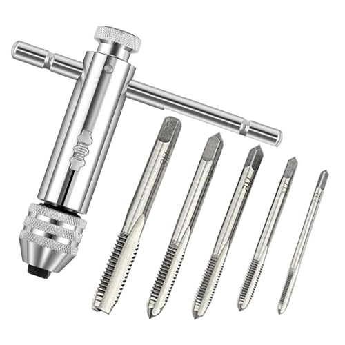 Tkxjry Set med 6 stycken, M3 M4 M5 M6 M8 gängtapp med justerbara, T-handtag vindjärnsspärrare, gängtapp set med verktygshållare, T-handtag vindjärn gängskärverktyg
