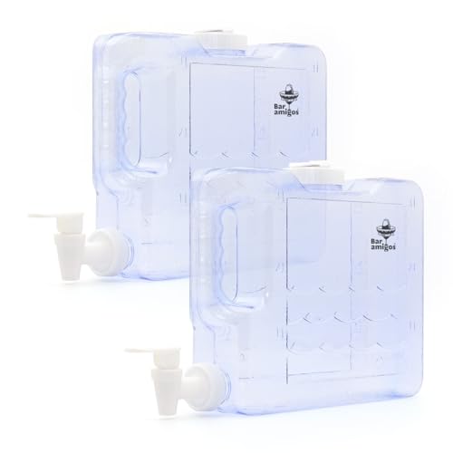 Bar Amigos dubbelpack med 2 smala kylskåpsvattendispenser 3 L med plastkran PETG resa skrivbord behållare dryck tank dryck påfyllningsbar hylla kontor camping juice drycker rymmer 3 liter (2 st)
