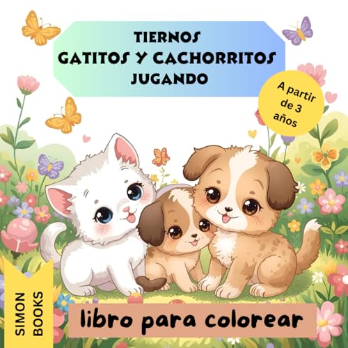 Tiernos Gatitos y Cachorritos Jugando - libro para colorear a partir de 3 años: Lleno de adorables amigos animales y aventuras felices con 30 motivos a una cara
