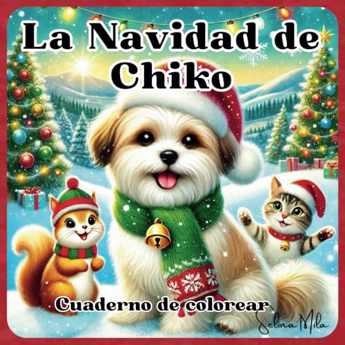 Cuaderno de colorear: Diversión navideña con Chiko: 50 ilustraciones de Chiko, el Shih Tzu, y sus amigos para niños de 3 a 8 años