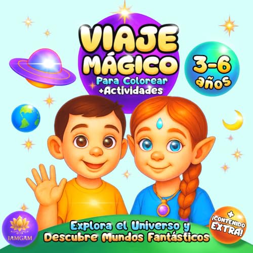 VIAJE MÁGICO para colorear: con Actividades + Historia para Explorar el Universo y Mundos Fantásticos con tus Amigos en su Nave Espacial - Para Niños de 3 a 6 Años (Spanish Edition)