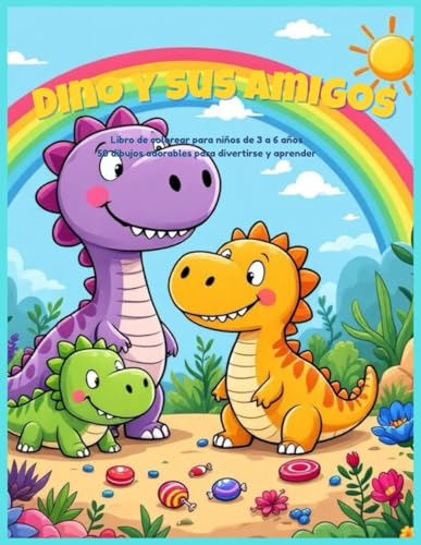 Dino y sus amigos: Libro de colorear para niños de 3 a 6 años — 50 dibujos adorables para divertirse y aprender