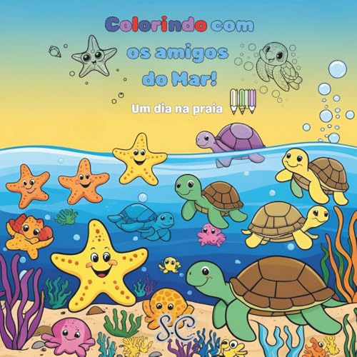 Colorindo com os amigos do mar: livro para colorir com 66 páginas, ideal para crianças 3-18: um dia na praia repleto de lazer para colorir bastante.