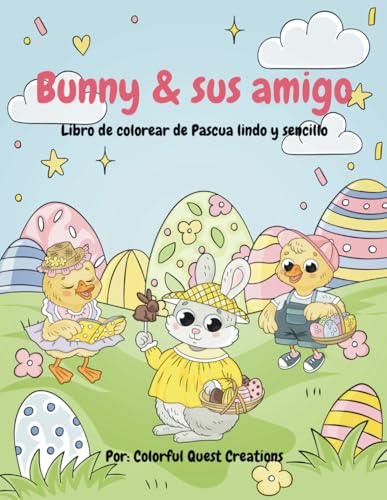 Bunny y amigos libro de colorear de pascua lindo y sencillo: Páginas de colorear de Pascua divertidas y sin estrés para niños de 3 a 8 años.