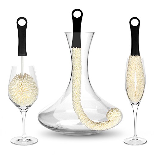 Bar Amigos Uppsättning av 3 – karaff och glas rengöringsborstar glas för rengöring av vin champagneglas babyflaskor ölstånar hals bägare återanvändbara vattensportflaskor rostfritt stål flaskor