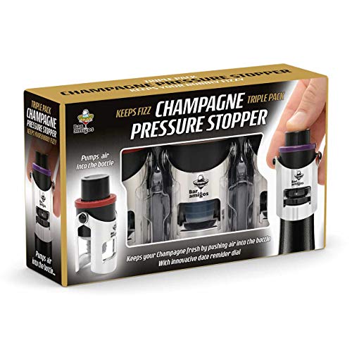 Bar Amigos trippel värdepaket med 3 champagnetryckstopparset sparpump tätare konserverare med champagneflaskstoppare patenterad teknik håller glittrande vin färskt i 7 dagar plus