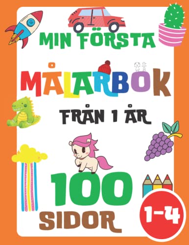 Min Första Målarbok för Småbarn: 100 vardagliga saker och djur för barn (flickor och pojkar) i åldrarna 1-3, 2-4 (dinosaurie, bil, enhörning, fordon, ... katter, leksaker, sjöjungfru och många fler)