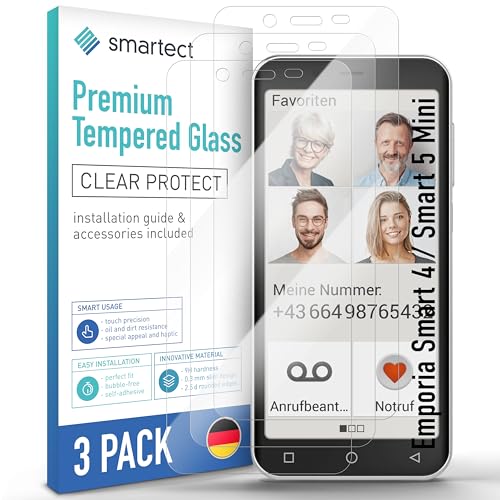 smartect [3 Stycken, Clear] Skärmskydd kompatibel med Emporia Smart 4 / Smart 5 Mini, HD Screen Protector i Härdat Glas 9H, Bubbelfri Installation, Anti-Fingeravtryck