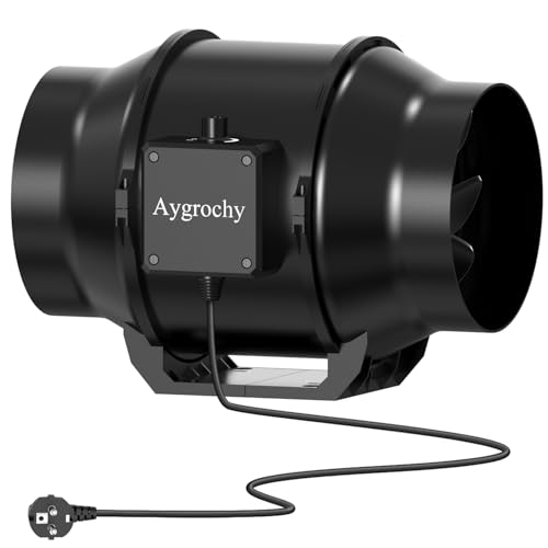 Aygrochy 150 mm justerbar luftdragare, EC 3-fas motor frånluftsfläkt med IEC EU Plug ent 1,5 m EU-nätsladd för badrum, odlingstält, kontorsventilation.