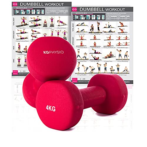 KG Physio Dumbbells Set och A3-affisch med träningsexempel - Hantlar kopplas ihop med neoprenbeläggning, bekvämt grepp, svettbeständig och anti-rullteknisk hantelsats