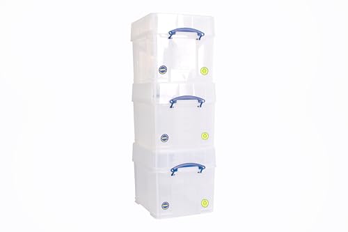 Really Useful, 35 Liter XL Förvaringslåda, Genomskinlig, Paket med 3