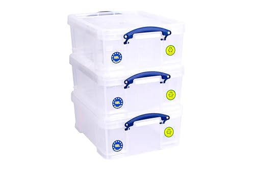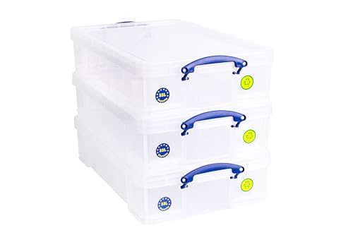Really Useful Box 3 x 6,5 liter transparent förvaringsbehållare för organisering hemma och på kontoret med säkert lock och snäpphandtag