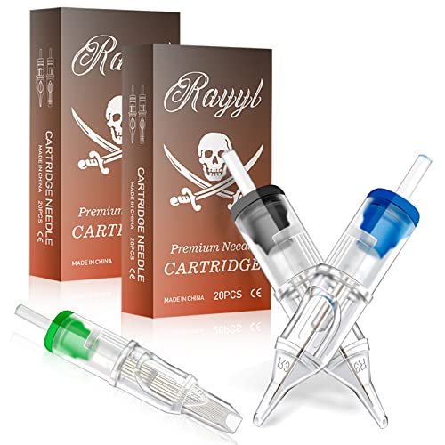 Rayyl Tattoo Cartridge Needles - 40PCS Mixed Tattoo Cartridges 3RL 5RL 7RL 9RL 3RS 5M1 7M1 9M1 Permanent Makeup Round Liner Magnum för Tattoo Supplies Cartridge Machine Pennor