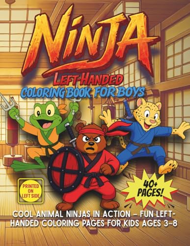 Left-Handed Ninja Coloring Book for Boys: Cool Animal Ninjas in Action – Fun Left-Handed Coloring Pages for Kids Ages 3–8