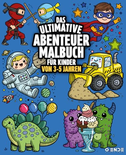 Das ultimative Abenteuer Malbuch für Kinder von 3-5 Jahren: Fahrzeuge, Superhelden, Dinosaurier, Ninjas und niedliche Monster zum Ausmalen