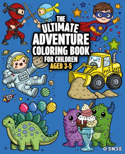 The Ultimate Adventure Coloring Book For Children Aged 3-5: Vehicles, dinosaurs, superheroes, cute monsters and ninjas to color