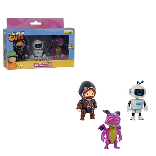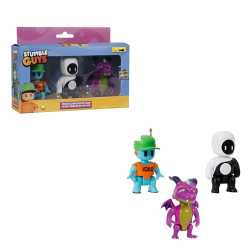 Stumble Guys Pack med 3 actionfigurer 8 cm set Robot Guy, olika karaktärer att samla, officiell licens för Dowdown-videospel, vuxna fans och pojkar eller flickor 8 år (64113003-4)