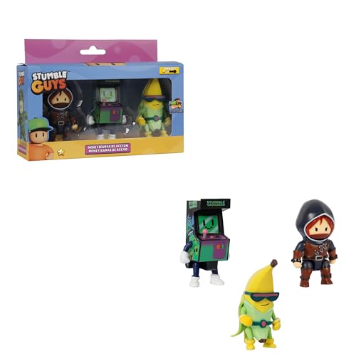 Stumble Guys Pack med 3 actionfigurer 8 cm set Banana Guy, olika karaktärer att samla, officiell licens för Downing videospel, vuxna fans och pojkar eller flickor 8 år (64113003-3)