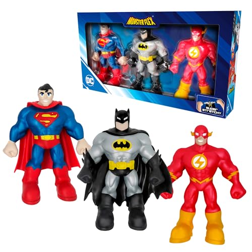 Bizak MONSTERFLEX DC 3-pack, dina favoritsuperhjältar, utdragbar och elastisk docka, 25 cm, samlare, vuxen fans, barn +6 år, (64392024)