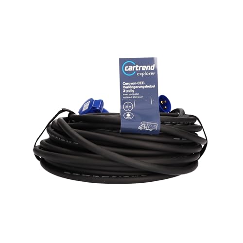 cartrend Explorer CEE förlängningskabel med 3-polig CEE-kontakt med gångjärnslock, förlängningskabel för användning vid camping och utomhus, olja, UV- och ozonbeständig, IP44, 25 m, svart