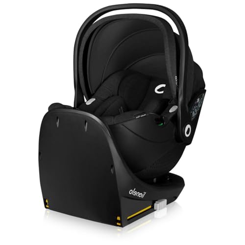 LIONELO Moxie i-Size Set: Babyskydd med ISOFIX-Bas, 40–87 cm (0–13 kg) Grupp 0+, 360° Roterbar, R129, Andningsbar Bambustyg, Lättvikt, Holmbergs 3-Punktsbälte, Sidokrockskydd, Tvättbar Klädsel, Svart