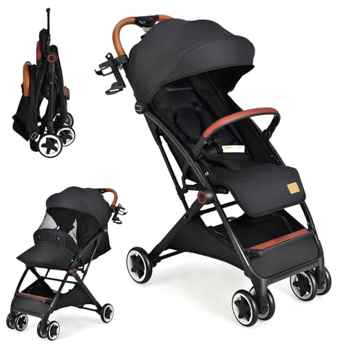 COSTWAY Vikbar barnvagn, resevagn med liggfunktion, barnvagn med justerbart ryggstöd och dold, lätt babyvagn med 5-punktsbälte för baby upp till 3 år, 15 kg (svart)