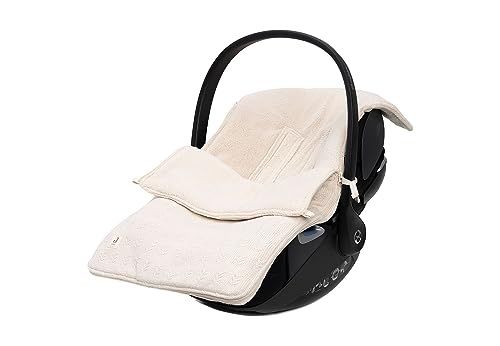 Jollein åkpåse Grain Knit Oatmeal – för babystol barnstol grupp 0+ och barnvagn – för 3-punkts- och 5-punktsbälte – stickat mönster och fleecefoder – ljusbeige