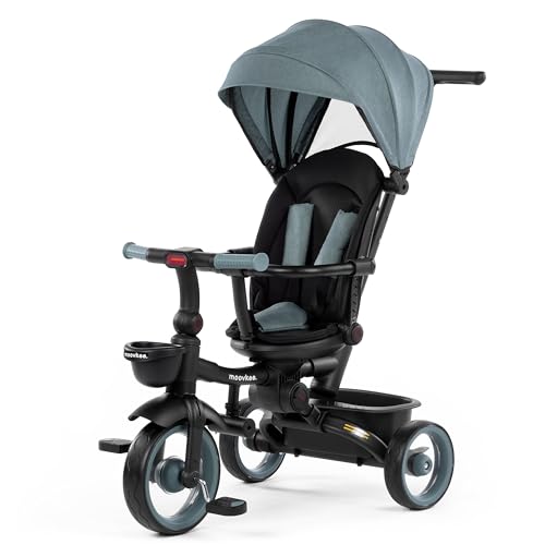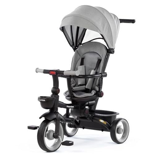 moovkee. Trehjuling för barn med skjutstång från 1 år med 360-graders säte – grå multifunktionell balanscykel med 4 konfigurerbara alternativ – säkerhet för ditt barn tack vare 3-punktsbälte och