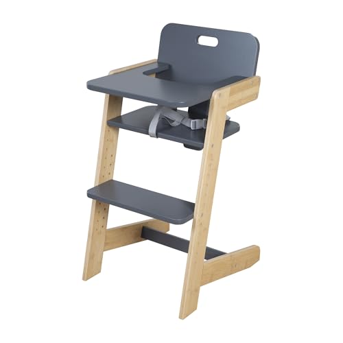 LIONELO Megan 3-i-1 Växande Barnmatstol i Trä (Baby från 6 Mån till Vuxna upp till 110 kg), Hög Stol med Justerbar Höjd & Fotstöd, Avtagbar Bricka med Silikonöverdrag, 5-Punktsbälte, Grå