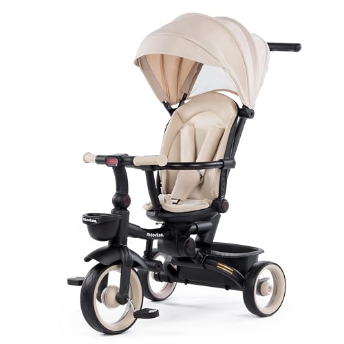 moovkee. Trehjuling för barn med skjutstång från 1 år med 360-graders säte – beige multifunktionell balanscykel med 4 konfigurerbara alternativ – säkerhet för ditt barn tack vare 3-punktsbälte och