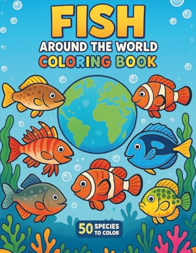Fish Around the World – 50 Species to Color: 50 fish species from rivers, lakes, and oceans + bonus fishing scenes – a fun and educational coloring book for kids ages 3–10