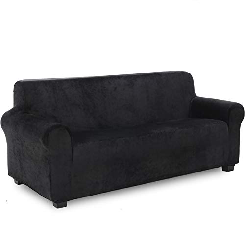 TIANSHU Velvet 3-sits sofföverdrag, Softoverdrag i mjuk sammet i plysch för soffa, eleganta lyxiga möbelöverdrag med armstöd Sofföverdrag(svart)