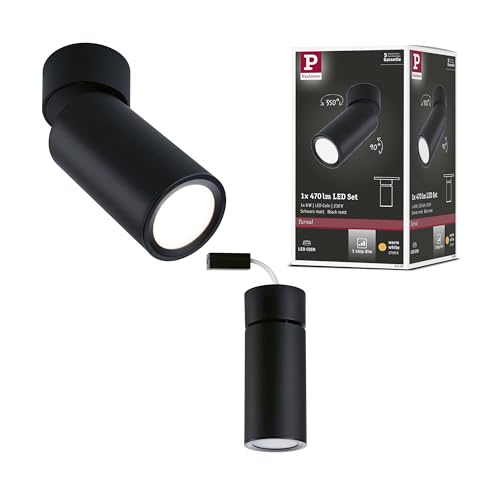 Paulmann 93089 LED Takbelysning Utanpåliggande belysning Turnal 470 lm 3-stegsdimmer Vridbar Rund 6W dimbar Taklampa Svart matt Metall 2700K Coin