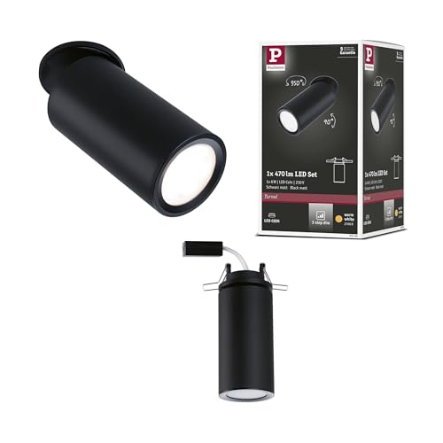 Paulmann 93088 LED Infällnadsbelysning Turnal Rund 60 mm 90° 470 lm 3-stegsdimmer Rund Inkl. 1x6W dimbar Infälld spot Svart matt Metall 2700K Coin