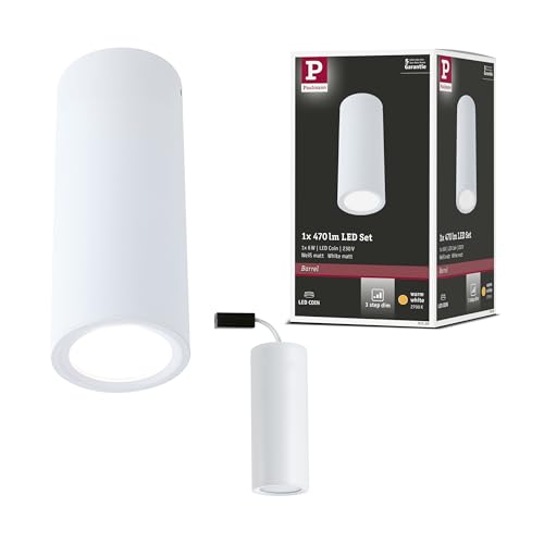 Paulmann 93105 LED-plafond Barrel rund 6W 470 lm Dimbar 100° 3-stegsdimmer 60 mm Matt vit Metall 2700K Utanpåliggande belysning inkl utbytbar LED-coin