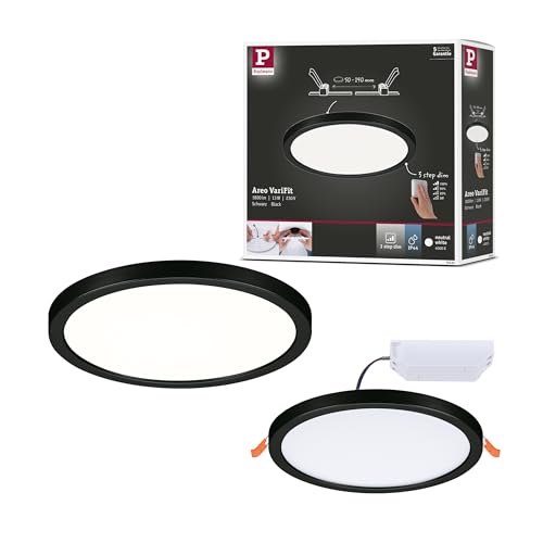 Paulmann 93099 LED-panel Infälld panel Areo IP44 175 mm 3-stegsdimmer Rund Dimbar Varmvitt Svart Plast Belysningssystem