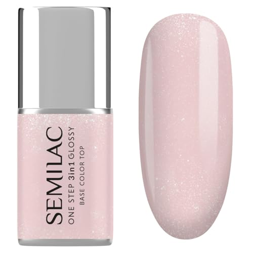 S250 Semilac UV-nagellack 3-i-1 One Step Glossy Glitter rosa 7 ml – glitter rosa UV gel nagellack 3-i-1 | Med bas och topp | 21 dagars hållbarhet utan flisning