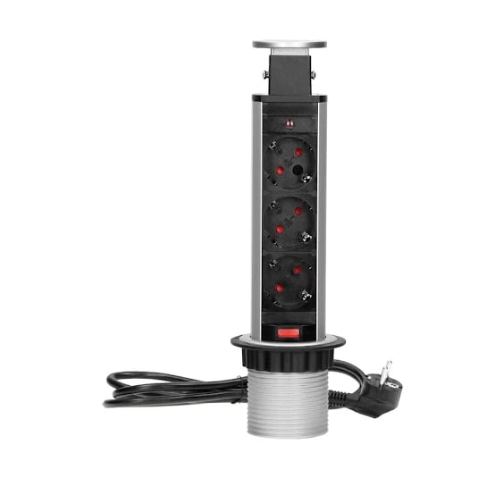 Pop-Up Bordsmodul 3-vägsuttag Silver