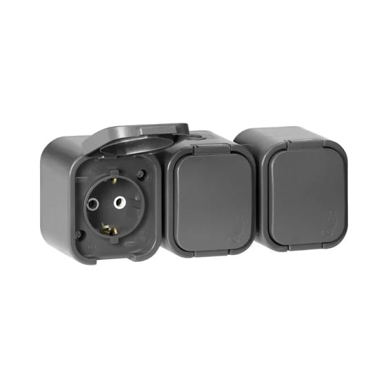 B2 3-vägsuttag Utanpåliggande IP54 Grå