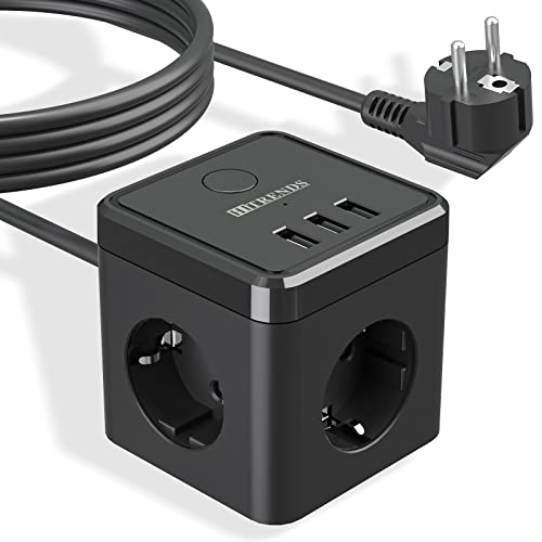 Uttagslist kub USB, multiuttag 3-vägsuttag 3 USB med strömbrytare, kub multikontakt distributionsuttag, stickproppslist med 2m förlängningskabel med strömbrytare för kontor, hem
