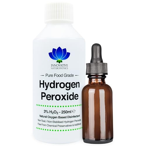 3 % väteperoxid av livsmedelskvalitet 250 ml med bärnstensfärgad droppflaska i glas