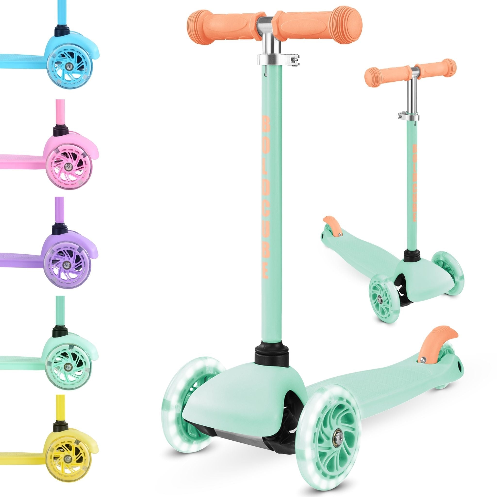 SereneLife 3 Wheel Foldable Kids Scooter - Foldable Seat, LED Wheel Lights, Adjustable Handlebar, Rear Foot Brake, Lean-to-Steer, Anti-Slip Deck, Ideal for Toddlers Kids 3+, up to 110Lbs (Mint Green)