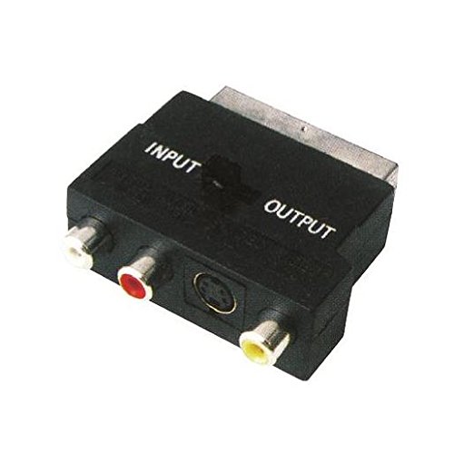 VoltShine Adapter - SCART till RCA/SVIDEO Euro-kontakt med 3 RCA- och SVIDEO-portar, svart, inklusive multifunktionsbrytare