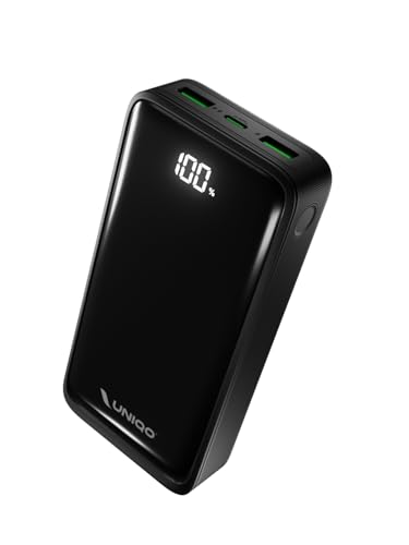 UNIQO Power LCD 20K Power Delivery 22,5 W (PD 3.0 PPS), 20 000 mAh powerbank, LCD-skärm, USB-C, USB-A, PowerBank med snabbladdning, iPhone-laddare, bärbar dator, svart