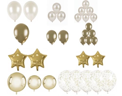 Set med 60 st. guldfärgade och svarta latexballonger på 30 cm (12 tum), konfettiballonger i guldmetallic, heliumballonger för dekoration vid bröllop, årsdag, babyshower, fest, födelsedag